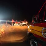 Motorista afasta-se do local após capotar carro da Secretaria de Saúde em União do Oeste