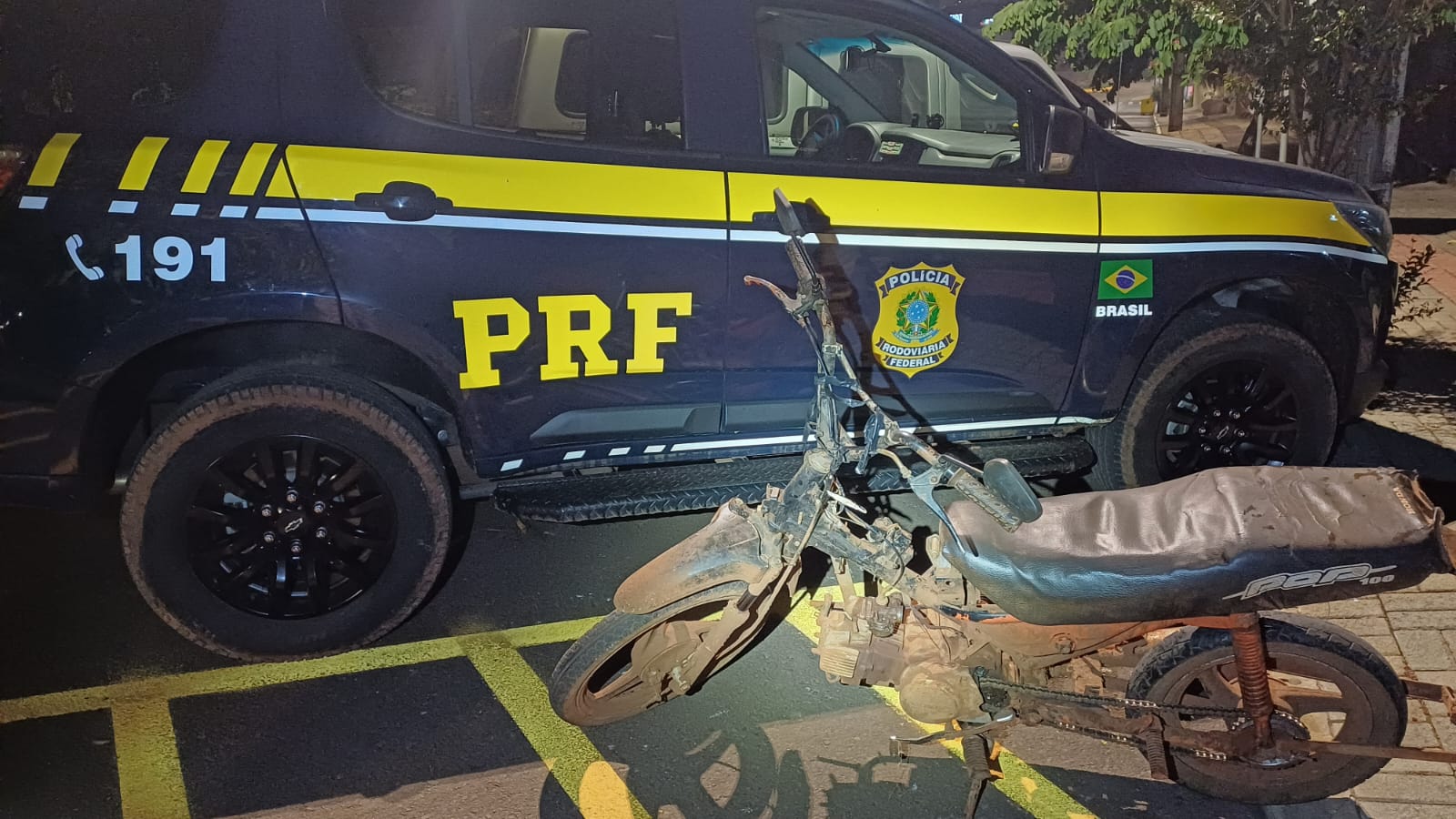 Segundo divulgado pela PRF, a equipe realizava rondas por volta das 20h40 encontrou a moto, em situação bastante precária e ocupada por dois homens.